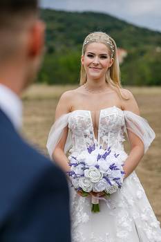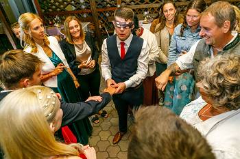 In addition to the fantastic atmosphere, the wedding service providers present also represented truly high quality. I would like to give special mention to the master of ceremonies, Sándor Alex Pap, who spoke with a perfect German accent, was always on top of things, and stylishly guided the events, as well as DJ Richárd Ollár, who set the mood perfectly with his carefully selected music. The Kisfaludy Guest House in Sümeg really went out of its way to provide a worthy venue and mouth-watering food and drinks for the wedding party.